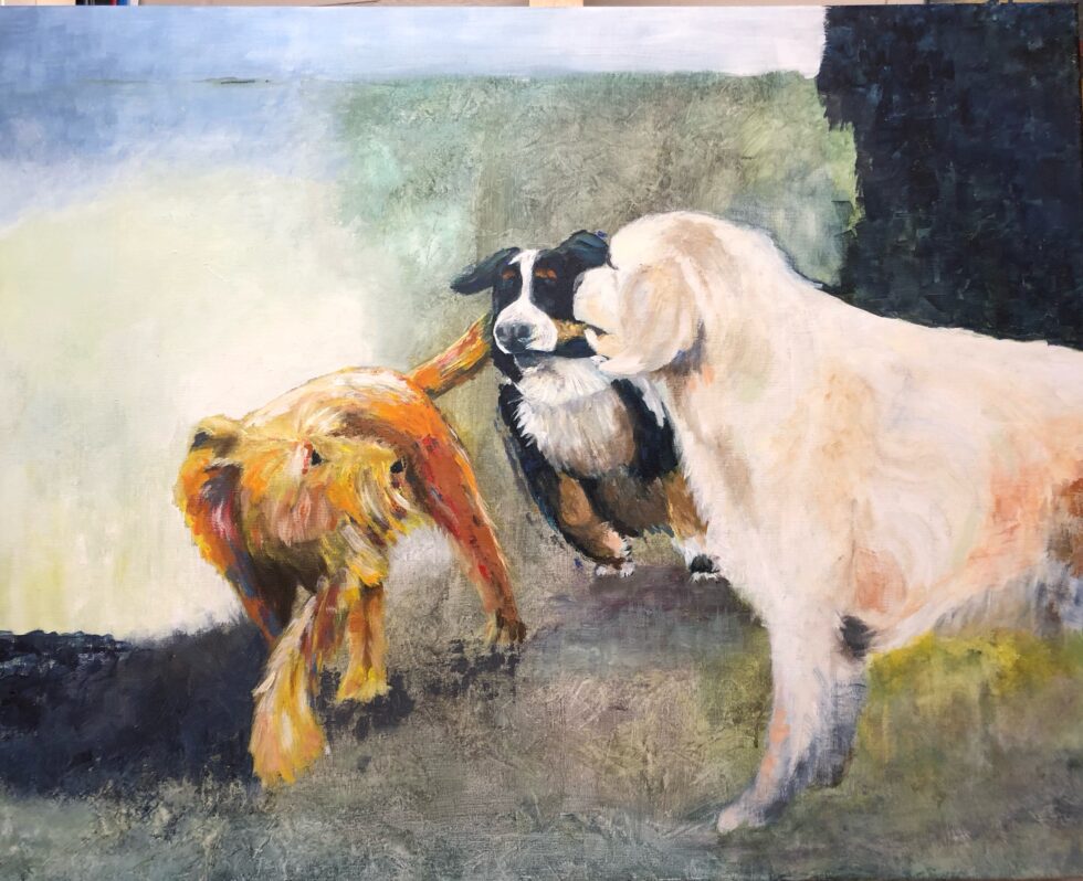 Naast het werken in zijn eigen atelier schildert Frans regelmatig samen met bevriende kunstenaars, daaruit haalt hij veel inspiratie.